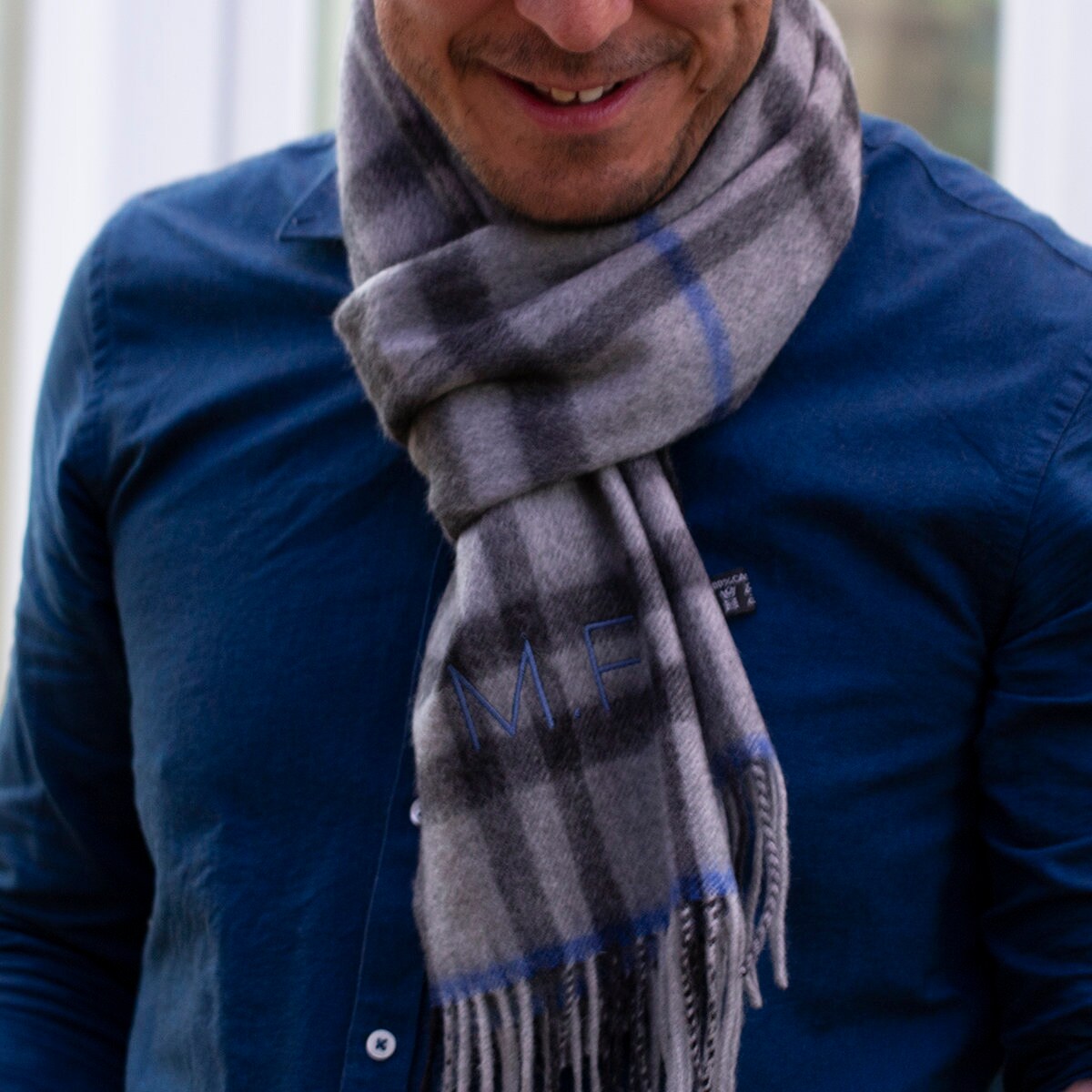 Men S Personalised 100 Cashmere Check Scarf Etsy Australia
